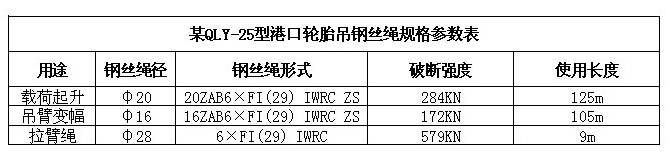 某QLY-25型轮胎吊常用参数表分析如下: