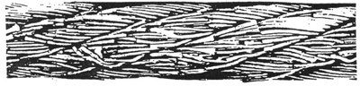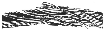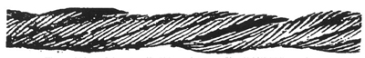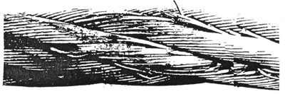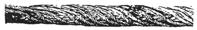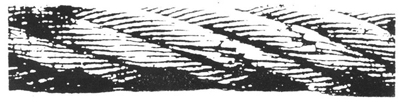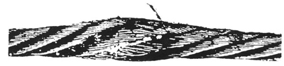 图3 顺捻钢丝绳在一股中有断丝,并伴随着轻度的磨损——如果这种情况代表着最严重的缺陷,理应继续使用(但断裂的钢丝应剪去断开端,使钢丝的尾部处在绳股空隙之中,这样就可防止进一步损伤相邻的钢丝)